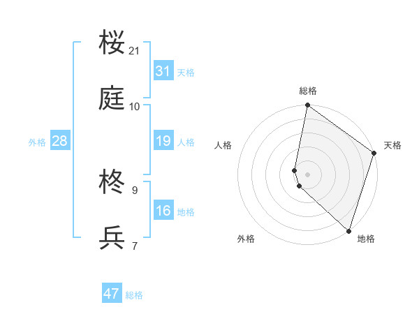 桜庭 柊兵さんの総格は47画の5点!