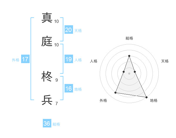真庭 柊兵さんの外格は17画の4点!