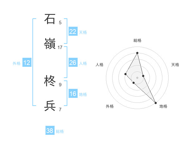 石嶺 柊兵さんの総格は38画の4点!