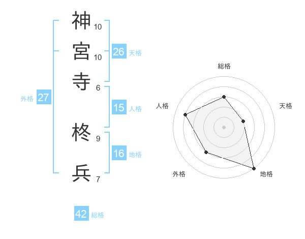 神宮寺 柊兵さんの総格は42画の3点!