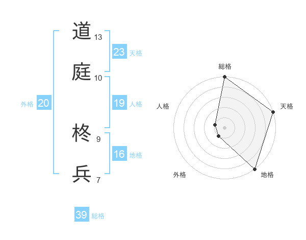 道庭 柊兵さんを姓名の画数から五運を鑑定