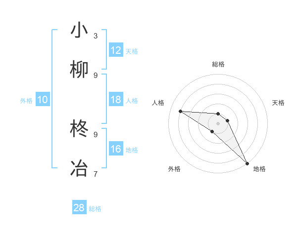 小柳 柊冶さんの天格は12画の1点!