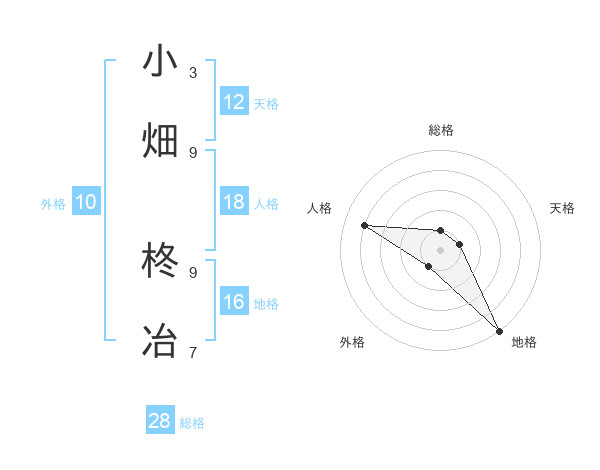 小畑 柊冶さんの総格は28画の1点!