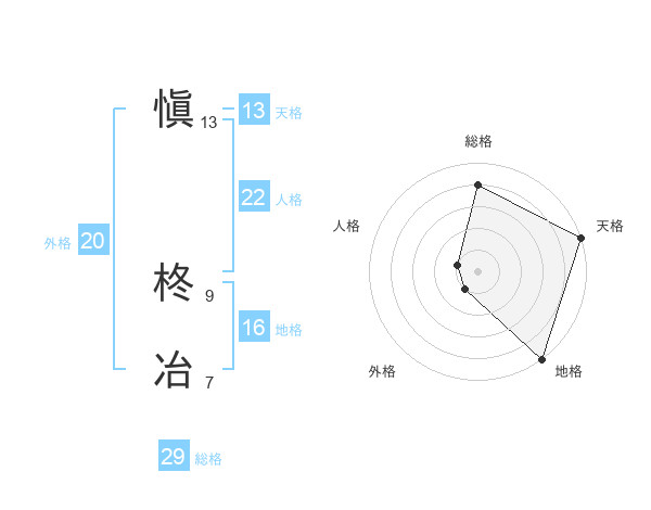 愼 柊冶さんの総格は29画の4点!