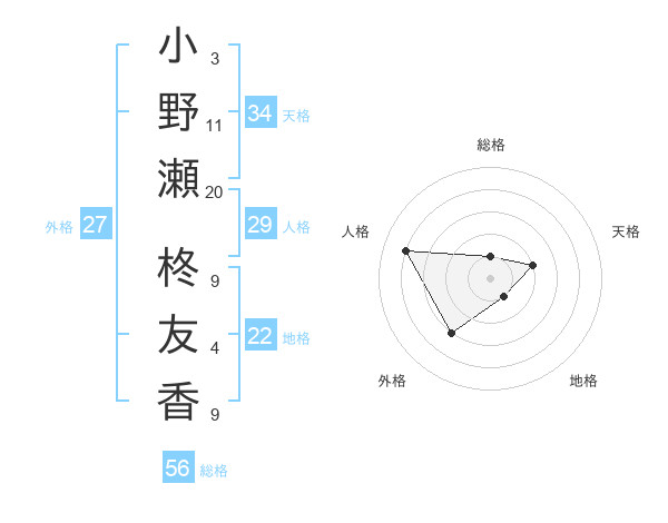 小野瀬 柊友香さんを姓名の画数から五運を鑑定