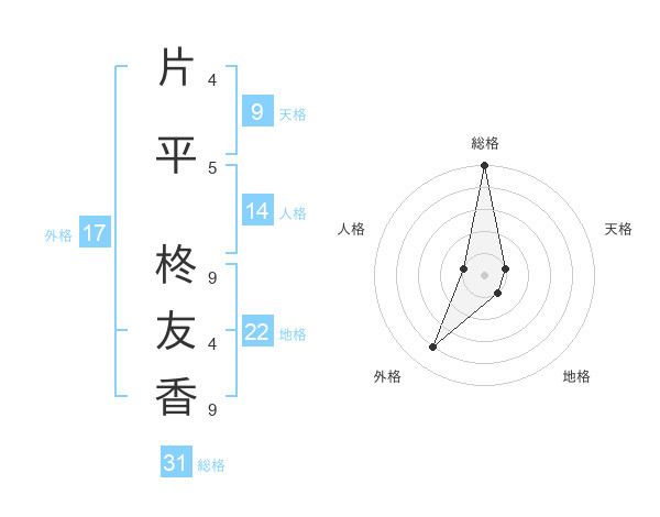片平 柊友香さんの総格は31画の5点!