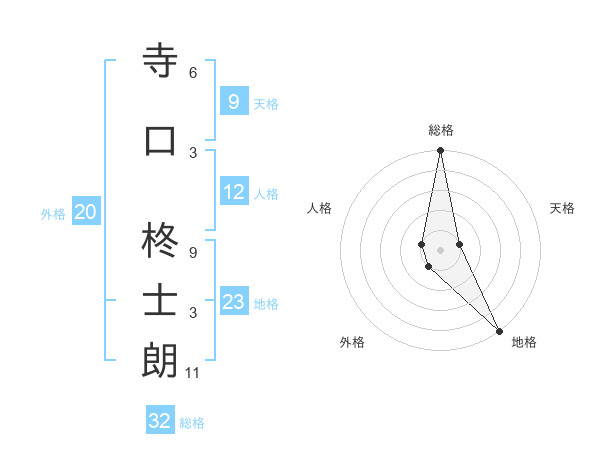 寺口 柊士朗さんの総格は32画の5点!