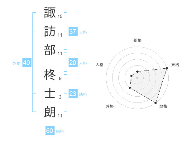 諏訪部 柊士朗さんの天格は37画の5点!