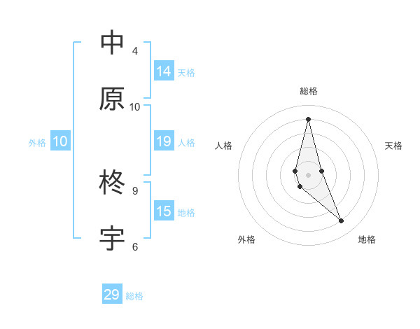 中原 柊宇さんの総格は29画の4点!