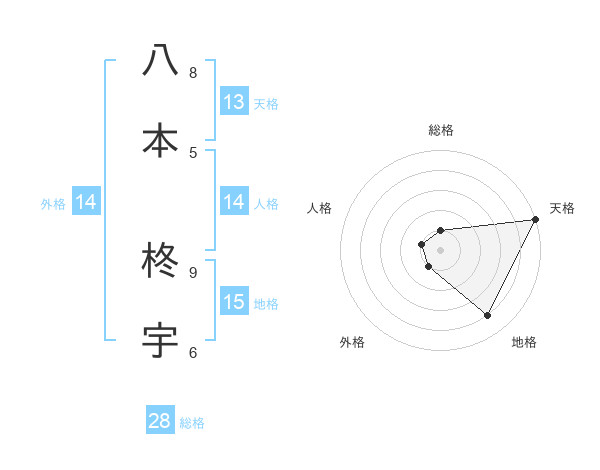 八本 柊宇さんの総格は28画の1点!