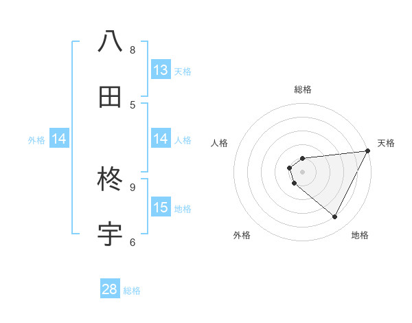 八田 柊宇さんの総格は28画の1点!