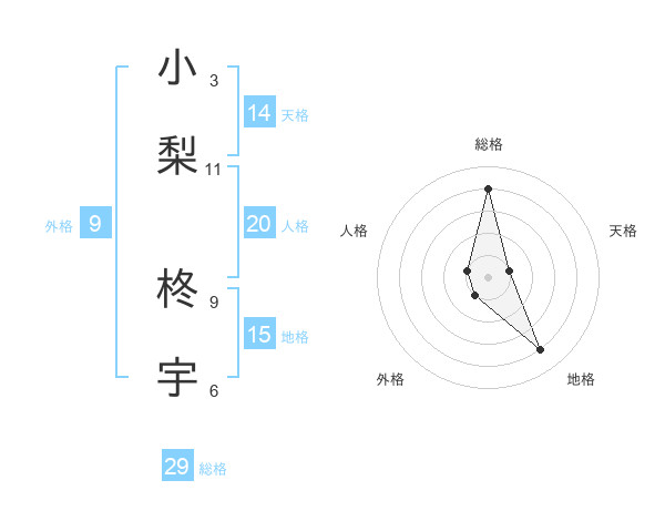 小梨 柊宇さんの総格は29画の4点!