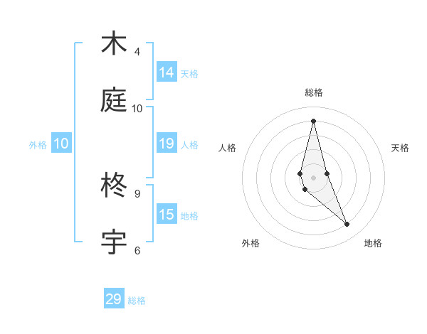 木庭 柊宇さんの総格は29画の4点!