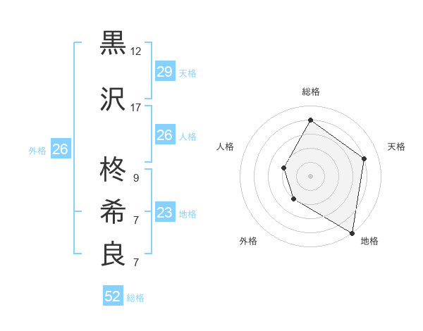 黒沢 柊希良さんを姓名の画数から五運を鑑定