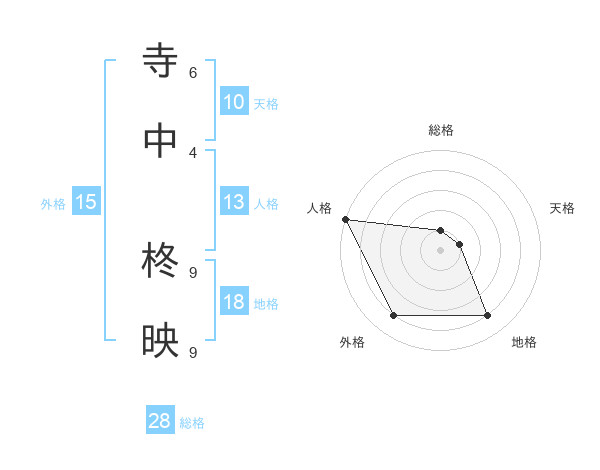 寺中 柊映さんの総格は28画の1点!