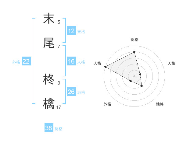 末尾 柊檎さんの外格は22画の1点!