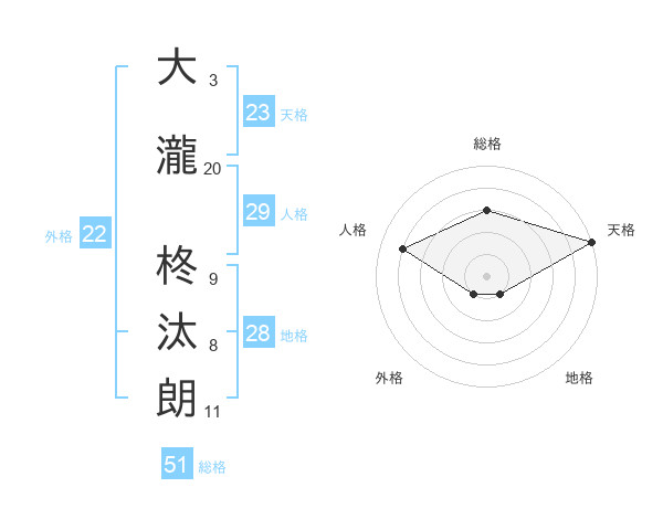 大瀧 柊汰朗さんを姓名の画数から五運を鑑定