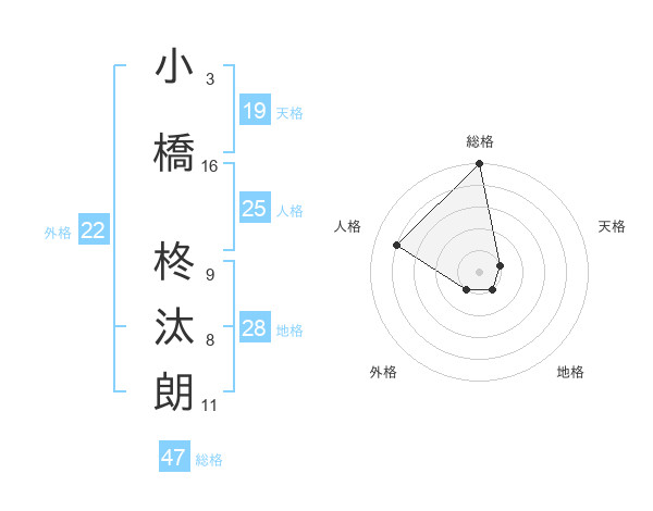 小橋 柊汰朗さんの外格は22画の1点!