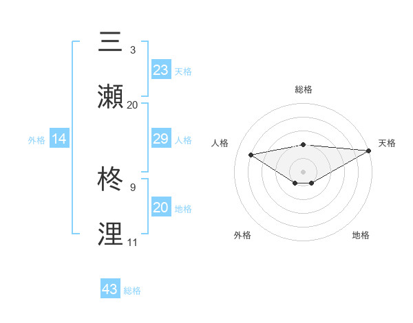 三瀬 柊浬さんの天格は23画の5点!