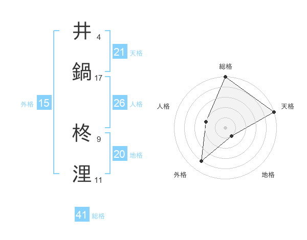 井鍋 柊浬さんを姓名の画数から五運を鑑定