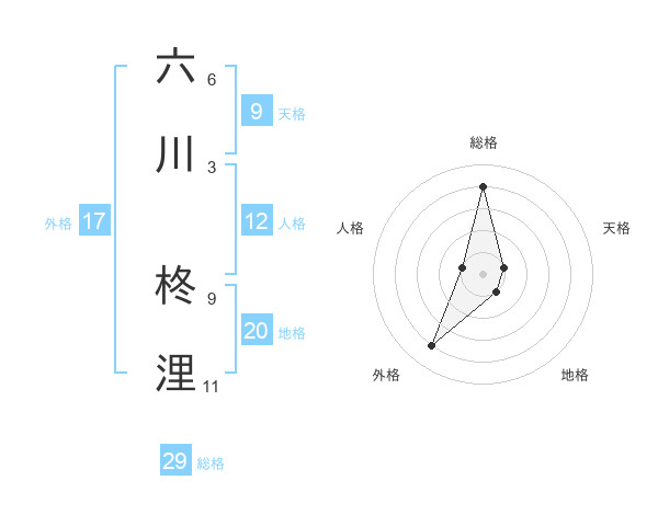 六川 柊浬さんの総格は29画の4点!