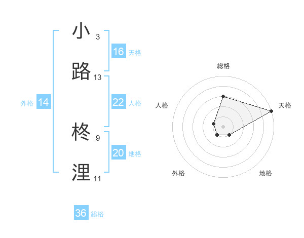 小路 柊浬さんの天格は16画の5点!