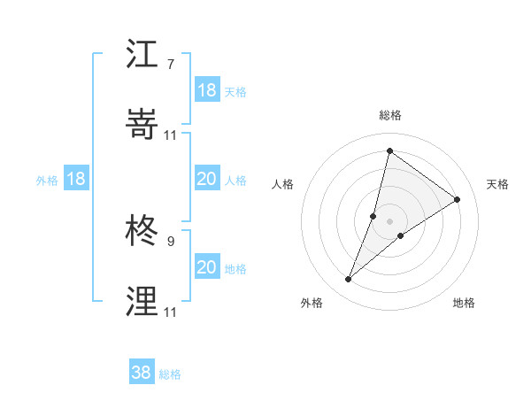 江嵜 柊浬さんの天格は18画の4点!