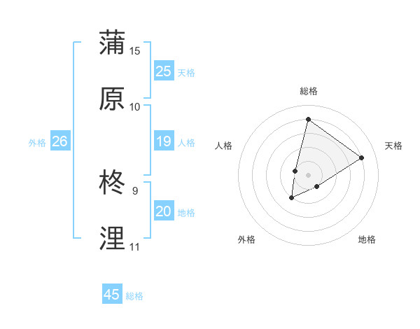 蒲原 柊浬さんの総格は45画の4点!