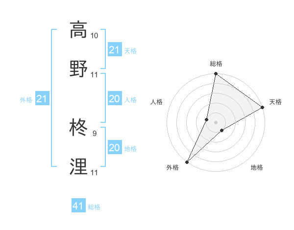 高野 柊浬さんを姓名の画数から五運を鑑定