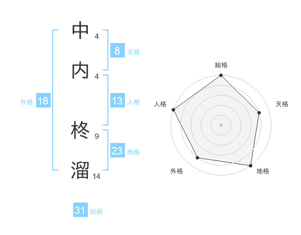 中内 柊溜さんの総格は31画の5点!