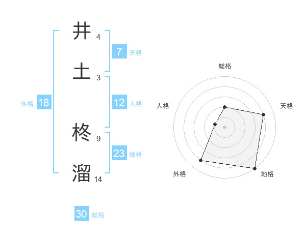 井土 柊溜さんの地格は23画の5点!