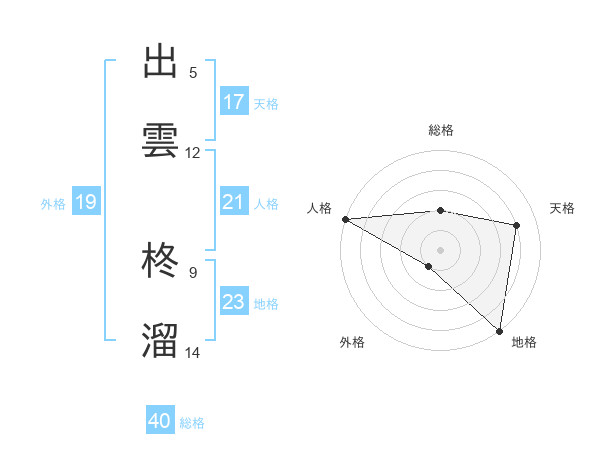 出雲 柊溜さんを姓名の画数から五運を鑑定