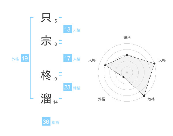 只宗 柊溜さんの天格は13画の5点!
