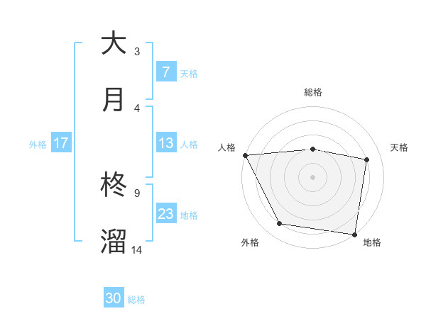 大月 柊溜さんを姓名の画数から五運を鑑定