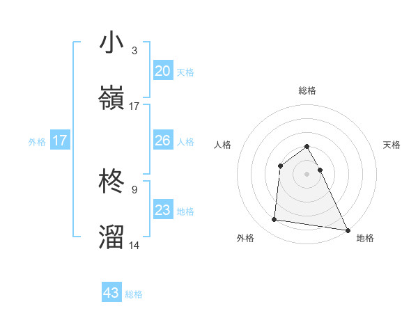 小嶺 柊溜さんを姓名の画数から五運を鑑定