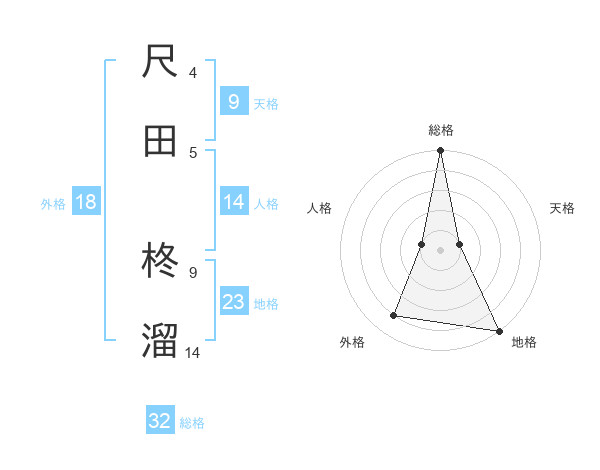 尺田 柊溜さんの総格は32画の5点!