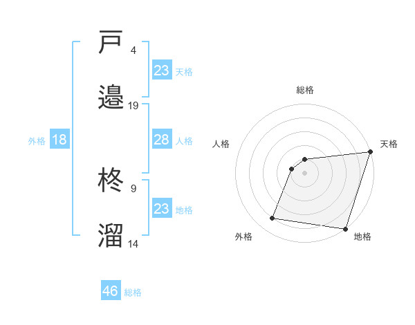 戸邉 柊溜さんの地格は23画の5点!