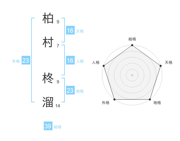 柏村 柊溜さんの外格は23画の5点!