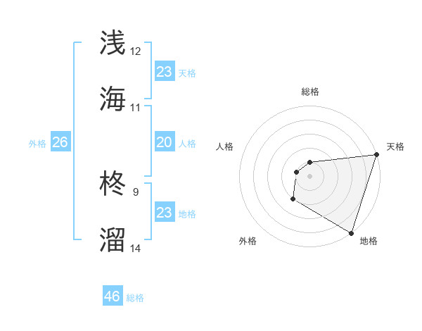 浅海 柊溜さんの天格は23画の5点!