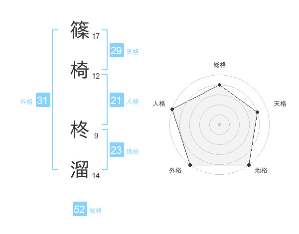篠椅 柊溜さんを姓名の画数から五運を鑑定