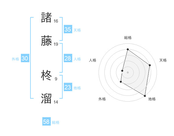 諸藤 柊溜さんの総格は58画の4点!