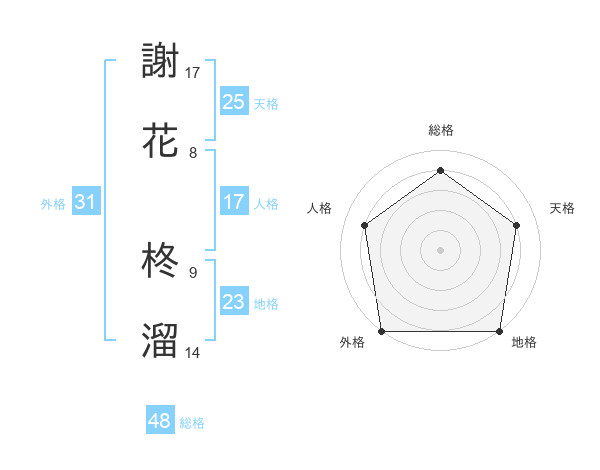 謝花 柊溜さんを姓名の画数から五運を鑑定