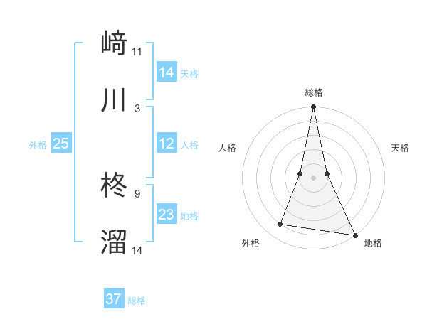 﨑川 柊溜さんの総格は37画の5点!