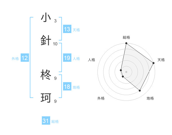 小針 柊珂さんの総格は31画の5点!