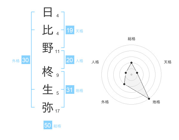 日比野 柊生弥さんの総格は50画の2点!