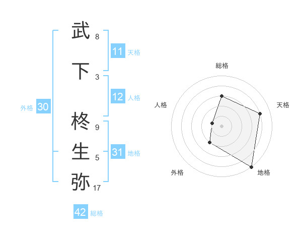 武下 柊生弥さんを姓名の画数から五運を鑑定