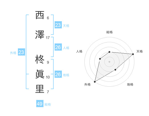 西澤 柊眞里さんの外格は23画の5点!