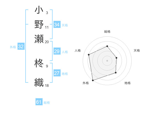 小野瀬 柊織さんを姓名の画数から五運を鑑定