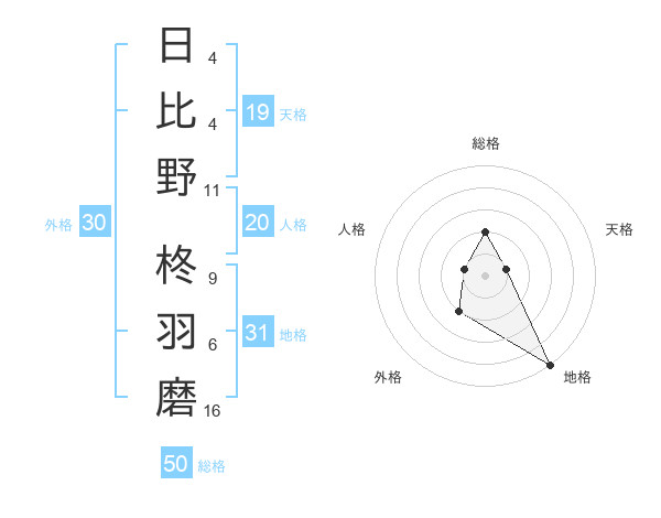 日比野 柊羽磨さんを姓名の画数から五運を鑑定