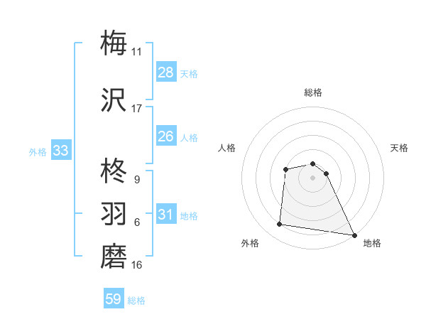 梅沢 柊羽磨さんの総格は59画の1点